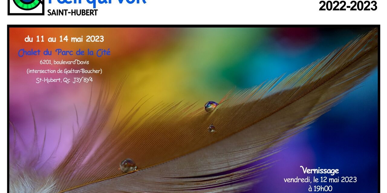 Nous vous attendons à notre exposition annuelle 2023, du 11 mai au 14 mai 2023 au Chalet du Parc de la Cité à Saint-Hubert, de 9h à 20h.